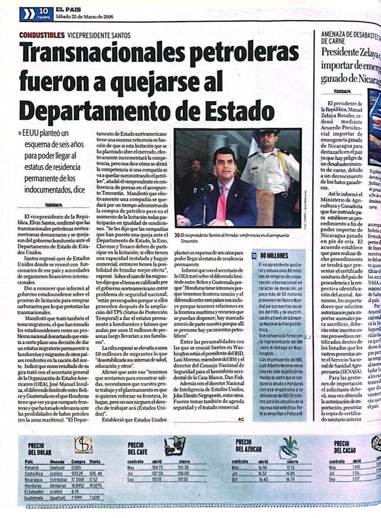 Esta decisión sería la primera de una serie de medidas en materia de soberanía energética. Durante el primer año de la gestión gubernamental se inició el proceso de licitación internacional para el abastecimiento de combustibles al país, que llevaría a la publicación en el Diario Oficial La Gaceta el decreto ejecutivo PCM- 41-2006 relativo a la reforma de la estructura de precios de los combustibles derivados del petróleo, de acuerdo a las variables internas y externas, con el objetivo de facilitar y abaratar y estabilizar el su suministro, almacenamiento y distribución.